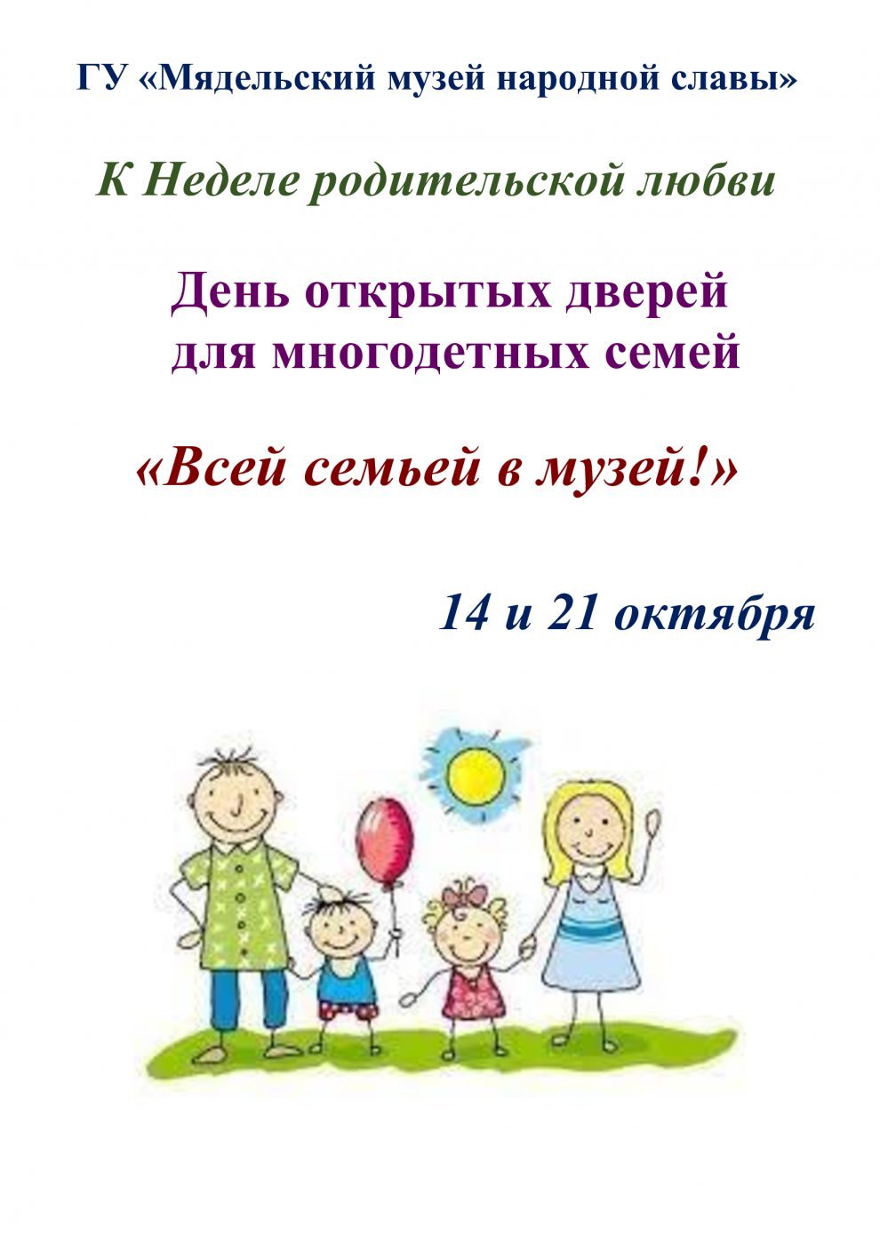 К Неделе родительской любви 14 и 21 октября в ГУ «Мядельский музей народной славы» в рамках акции «Всей семьей в музей!» пройдут дни открытых дверей для многодетных семей (посещение экспозиции на безвозмездной основе).